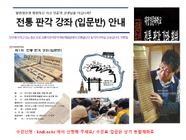 | 21 | 전통 판각 강좌(입문반) 안내 [1] | 교육팀/대리 | 7851 | 2018년 8월 20일 | |