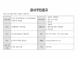 | 공지 |  | 기업교육전문강사 양성교육 2025년 개강 안내 | 원장 | 144850 | 2025년 3월 20일 |